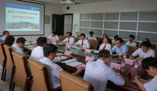 庭审结束后,最高人民法院第六巡回法庭—球友会官网_球友会平台(中国)座谈会在主E910会议室召开,第六巡回法庭张明副庭长和专职党务干部(廉政监察员)郭利然带领其庭审与管理团队、西安交大席光副校长、球友会官网_球友会平台(中国)访问教授、牛津大学常务副校长Ewan McKendrick、社科处贾毅华处长以及球友会官网_球友会平台(中国)领导及师生代表数十人参加了座谈会。