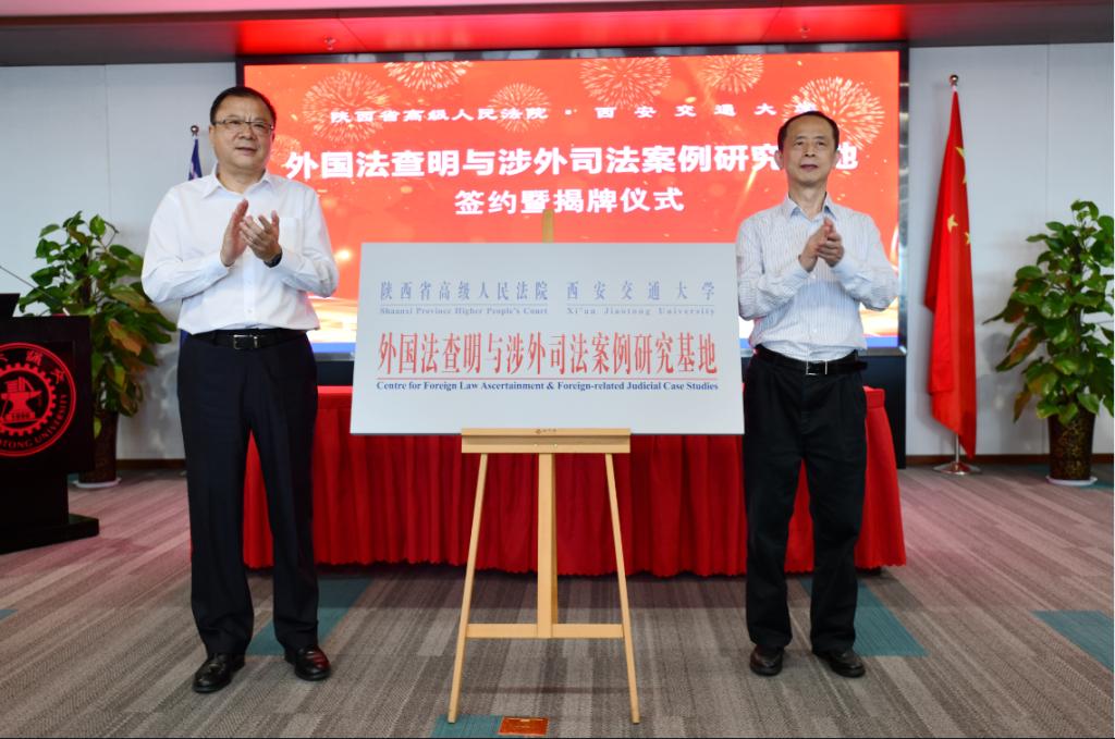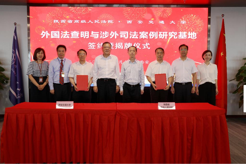 7月9日上午,陕西省高级人民法院—球友会官网_球友会平台(中国)外国法查明与涉外司法案例研究基地签约暨揭牌仪式在中国西部科技创新港涵英楼举行。陕西省高级人民法院党组书记、院长李智,球友会官网_球友会平台(中国)党委书记卢建军共同为研究基地揭牌。陕西省高级人民法院副院长巩富文、球友会官网_球友会平台(中国)副校长席光签署共建协议。