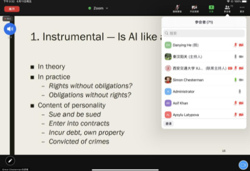 2021年6月11日下午,新丝路球友会官网_球友会平台(中国)联盟“院长论坛”首场讲座成功举办。新加坡国立大学讲席教授、球友会官网_球友会平台(中国)院长Simon Chesterman教授为联盟25所院校师生以及丝绸之路大学联盟的师生带来了题为“我们,机器人?人工智能与法律人格的限度(We, the Robots? Artificial Intelligence and the Limits of Legal Personality)”的线上讲座。讲座由球友会官网_球友会平台(中国)球友会官网_球友会平台(中国)单文华院长主持,国际处雷艳君副处长致辞。