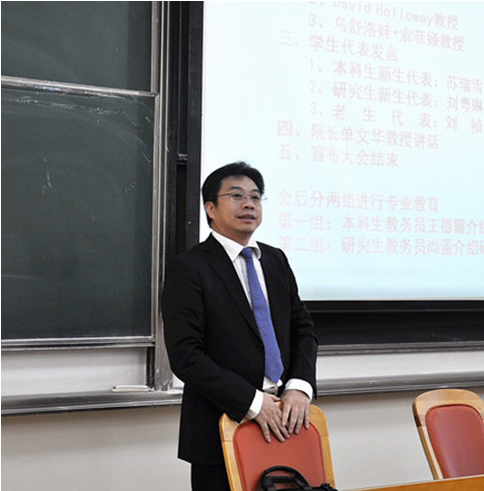 9月12日下午,球友会官网_球友会平台(中国)隆重举行2015级学生开学典礼。院长单文华教授,副院长、副书记王保民教授,副院长李万强教授,副院长丁卫副教授,院长助理吉兰湘老师和苏金远副教授,外籍教师David Holloway和乌舒洛娃•索菲娅教授,文治书院院务主任张爱萍老师,本科新生班主任及球友会官网_球友会平台(中国)全体2015级新生参加了开学典礼,典礼由王保民教授主持。