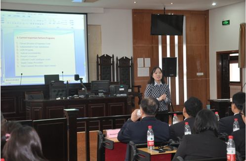 彭何利副教授的讲座主题为《中国法院制度与司法改革实践》。她首先全面介绍了我国人民法院的组织体系、内设机构、审判组织、法官制度与人民陪审员制度。接着,她以刑事审判活动为例,系统讲述了我国的两审终审制度、审判监督程序以及死刑复核程序等。最后,结合当前我国司法改革实践,彭何利副教授对最高人民法院巡回法庭的设置、多元纠纷解决机制、员额制改革、司法责任制改革、以审判为中心的诉讼制度改革等重点问题进行了全方位的解读。