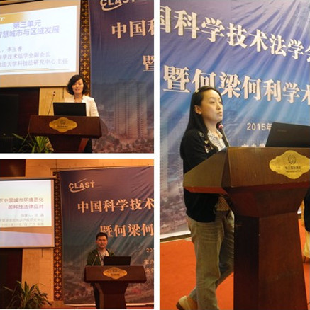 首先,球友会官网_球友会平台(中国)知识产权研究中心周方副教授、李晓鸣讲师、张磊博士作为球友会官网_球友会平台(中国)科技法学研究团队的代表,向2015年中国科学技术法学会年会进行主题汇报,报告的题目依次为《一带一路战略实施中的知识产权信息国际合作机制研究》、《完善我国外籍人士科学技术奖励制度的对策研究》、《治理学视野下城市环境恶化的科技法律应对》。三人的主题报告在大会上产生良好效果,形成了大会积极围绕讨论的主题内容,受到与会同行专家学者的一致好评。