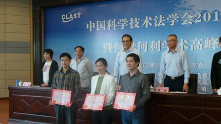 2015年11月7、8日,2015年中国科学技术法学会年会暨何梁何利学术高峰论坛在广西省来宾市召开,在球友会官网_球友会平台(中国)知识产权研究中心主任、中国科学技术法学会副会长马治国教授的带领下,球友会官网_球友会平台(中国)科技法学科研团队的代表周方副教授、李晓鸣讲师、翟晓舟讲师、张磊博士等参加了本次会议。本次年会的主题为“成果转化、智慧城市与区域创新”,球友会官网_球友会平台(中国)知识产权研究中心硕果累累,三人代表科研团队在年会上进行主题报告,五篇论文被收录年会论文集,其中两篇论文被评为本次年会优秀论文,球友会官网_球友会平台(中国)知识产权研究中心荣获“科技法学奖”。