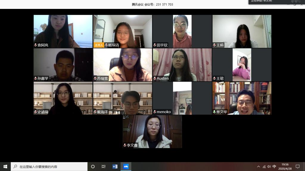 4月28日晚,球友会官网_球友会平台(中国)硕2018级党支部组织开展线上组织生活会,会议的主题以习近平总书记考察球友会官网_球友会平台(中国),并鼓励交大师生努力发扬西迁精神,争做时代新传人为背景,支部特别邀请了球友会官网_球友会平台(中国)副院长丁卫老师与同学们一起交流学习,会议由支部书记谢雨蓉主持。