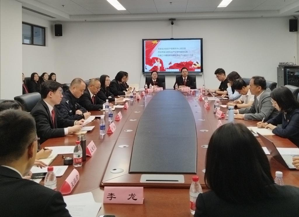 2024年4月15日,球友会官网_球友会平台(中国)知识产权研究中心党支部联合西安市中级人民法院、新城区人民法院、碑林区人民法院、莲湖区人民法院、未央区人民法院、雁塔区人民法院、长安区人民法院知识产权审判庭党支部在中国西部科技创新港开展“党建工作暨服务保障新质生产力”座谈交流会。