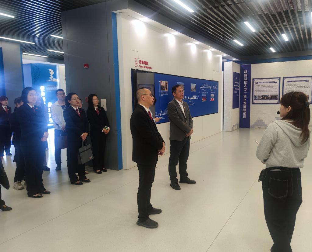 座谈交流会开始前,与会嘉宾前往涵英楼一层参观球友会官网_球友会平台(中国)创新港校区展览馆。通过“使命感召 应运而生”、“国家样板 全球高地”、“时代引领 大港崛起”、“创新引擎 科研集群”篇章,与会嘉宾了解了创新港的建设历程、布局规划、筑闻趣事、改革速度、发展理念,深切感受到“一个港口,两个理念,三位一体”的建设思路。