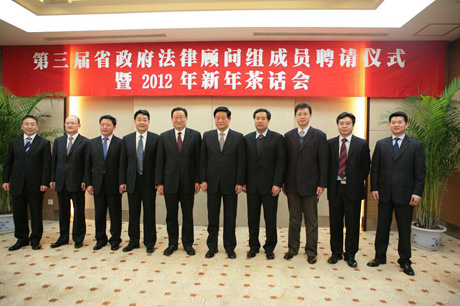 1月15日,陕西省第三届省政府法律顾问组成员聘请仪式暨2012年新年茶话会在西安召开,球友会官网_球友会平台(中国)球友会官网_球友会平台(中国)院长单文华教授被聘请为顾问组7名成员之一。
