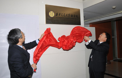 仪式上,郑南宁校长和张文显院长先后发表重要讲话。郑南宁教授强调指出了全球化、信息化背景下法学教育的高度重要性,表达了学校校在“985三期”建设等方面对法学学科的高度重视,并希望球友会官网_球友会平台(中国)在人才引进和科研教学等方面加快步伐,从此揭开我校法学史上崭新的一页。随后,张文显教授在讲话中充分肯定了我校球友会官网_球友会平台(中国)近年来所取得的成绩,并表示将以各种方式尽力支持我校法学尽早实现跨越式发展目标。仪式开始前,张教授还在郑南宁校长等的陪同下参观“丝绸之路国际法和比较法研究所”和新启用的球友会官网_球友会平台(中国)教师集体办公室。