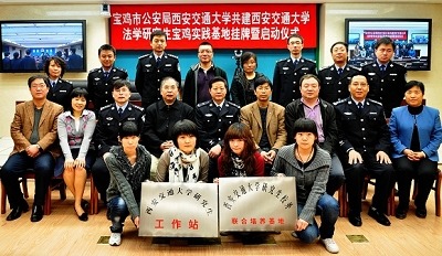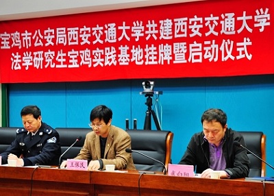 4月10日,我院与宝鸡市公安局“共建球友会官网_球友会平台(中国)法学研究生宝鸡实践基地挂牌暨启动仪式”在宝鸡举行。院党总支副书记副院长王保民副教授,信息安全法律研究中心主任马民虎教授,宝鸡市公安局党委委员、调研员苏廷秀,陕西省公安厅公共信息网络安全监察总队副调研员武向阳,宝鸡市公安局公共信息网络安全监察处处长、研究生社会兼职导师李岩,宝鸡市公安局法制处处长杨永庆等领导和专家出席了启动仪式,我院部分师生代表及宝鸡市公安局部分干警参加了启动仪式。