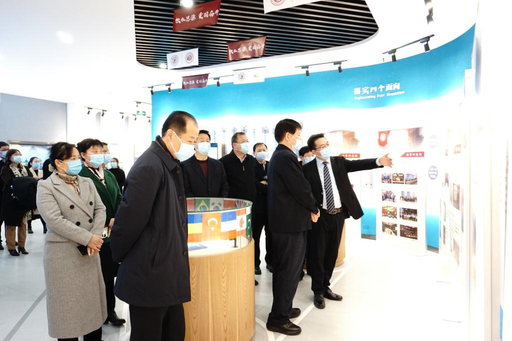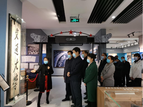 王其江一行参观了西迁博物馆,了解交大西迁历史,重温西迁精神的形成发展过程。调研过程中校党委书记卢建军从学校办学历史沿革、人才培养、学科建设、科研项目等方面进行了介绍。