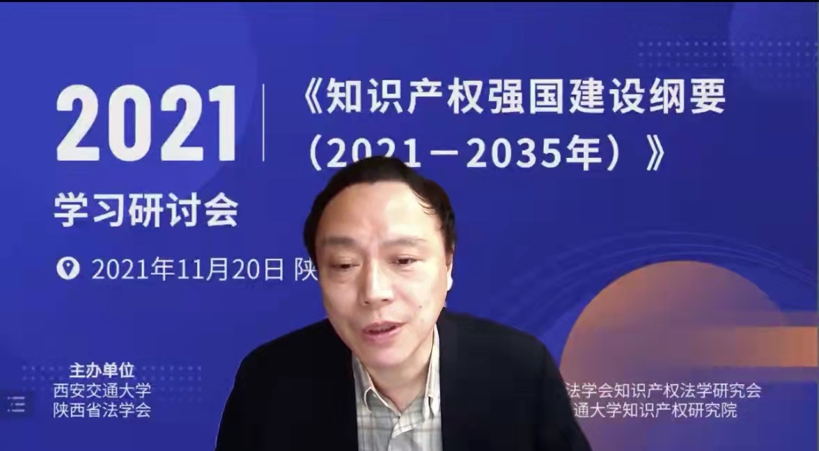 11月20日上午,为深入贯彻学习《知识产权强国建设纲要(2021—2035年)》《“十四五”国家知识产权保护和运用规划》等重要政策文件精神,论证知识产权学科和知识产权人才培养模式建设,研讨新形势下如何推进学科高质量发展,球友会官网_球友会平台(中国)知识产权研究院举办了《知识产权强国建设纲要(2021—2035年)》学习研讨会。本次会议由球友会官网_球友会平台(中国)和陕西省法学会主办,陕西省法学会科学技术法学研究会、西安市法学会知识产权法学研究会、球友会官网_球友会平台(中国)知识产权研究中心、球友会官网_球友会平台(中国)知识产权研究院承办。会议在中国西部科技创新港举行,线上和线下来自知识产权法学界的著名专家学者、领导嘉宾、实务工作者以及在校师生等一百余人参与了本次研讨会。