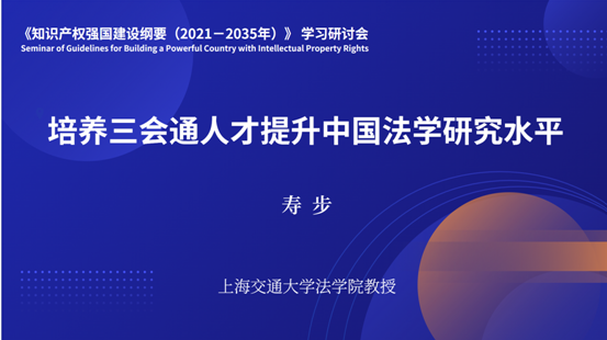 在第二模块“球友会官网_球友会平台(中国)知识产权学科建设论证”环节,宋晓亭教授、寿步教授分别作了“知识产权学科建设之我见”“培养三会通人才提升中国法学研究水平”的报告,李晓鸣副教授主持,与谈人邱洪华教授、焦和平副教授作了精彩发言。