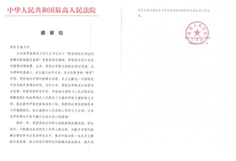 近日,最高人民法院立案庭致函我校,就我院球友会官网_球友会平台(中国)单文华教授团队参与最高人民法院工作表示感谢。