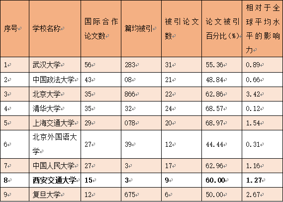 (数据和表格信息来源:中国政法大学“法治科学计量与评价中心”官方微信公众号,原文题目为《我国首批涉外法律人才教育培养基地建设情况——国际合作论文分析》)