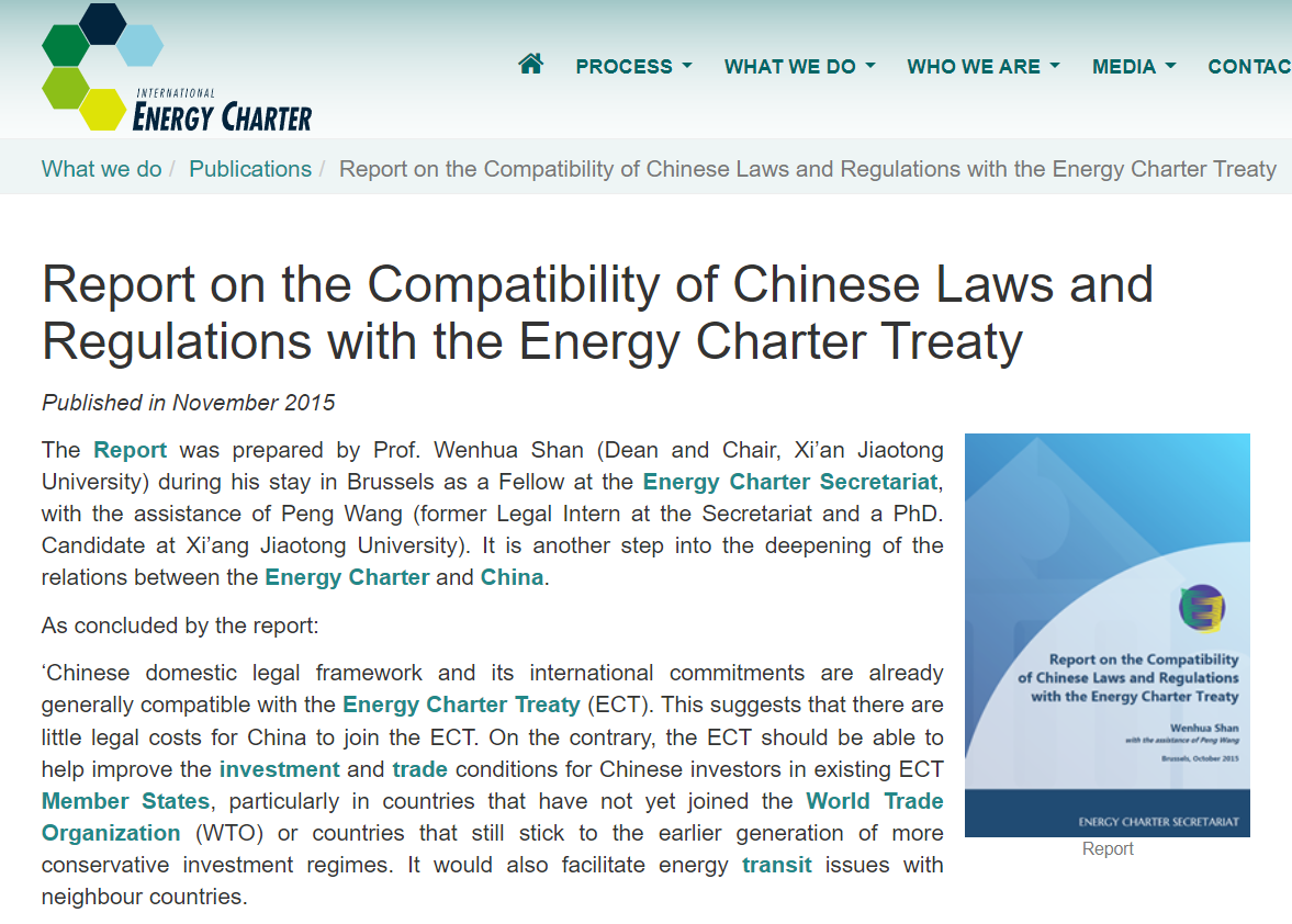 报告下载:Report on the Compatibility of Chinese Laws and Regulations with the Energy Charter Treaty - Energy Charter