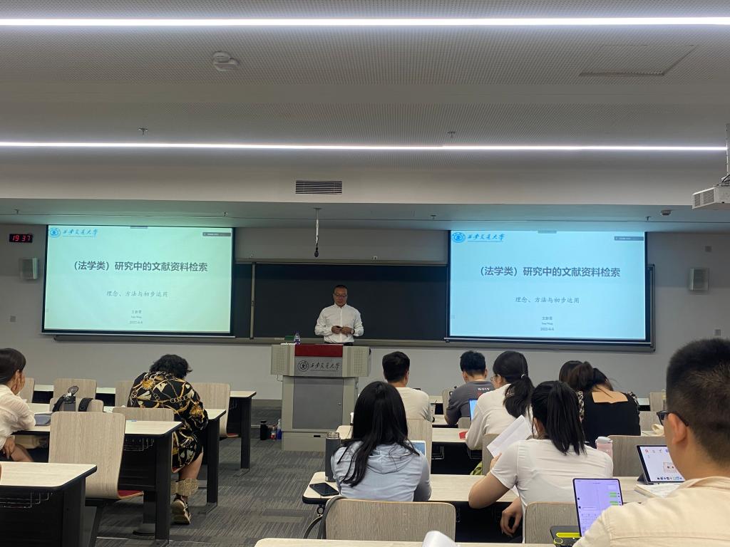 为了进一步推动法科研究生学位论文开题前的准备工作, 从论文选题、资料收集和写作规范对研究生加以引导,我院于6月1日上午和6月8日晚,分别邀请了张生教授和王新雷助理教授在创新港5-3107教室举办了《硕士学位论文撰写规范及要点》和《学术研究中的文献资料检索方法》两场学术讲座。讲座均采用线上线下同步进行的方式。