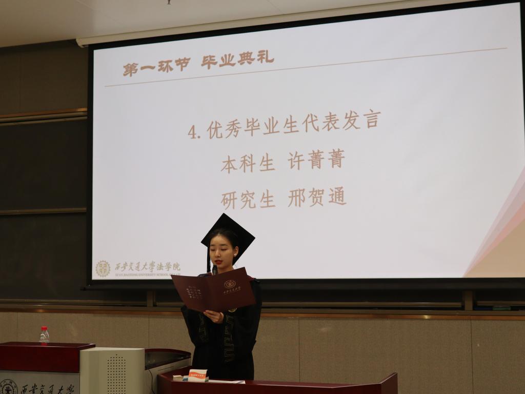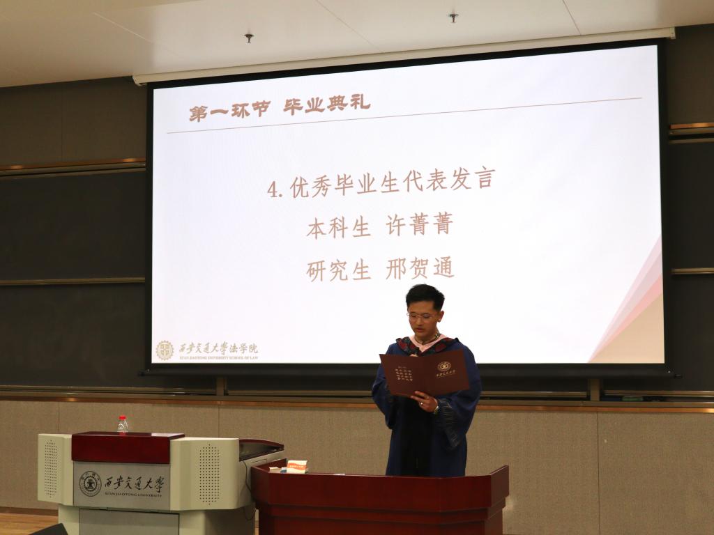 本科毕业生代表许菁菁、研究生毕业生代表邢贺通代表球友会官网_球友会平台(中国)2023届全体毕业生,分享了毕业感悟。“数载励志求学,一朝鲲鹏展翅”,毕业生们即将离开学校、步入社会,两位学生代表一同回忆了在球友会官网_球友会平台(中国)度过的难忘时光,表达了对母校的真挚感谢,对老师的感恩和对同学的不舍,抒发了对学校、学院的祝福和对未来的展望。
