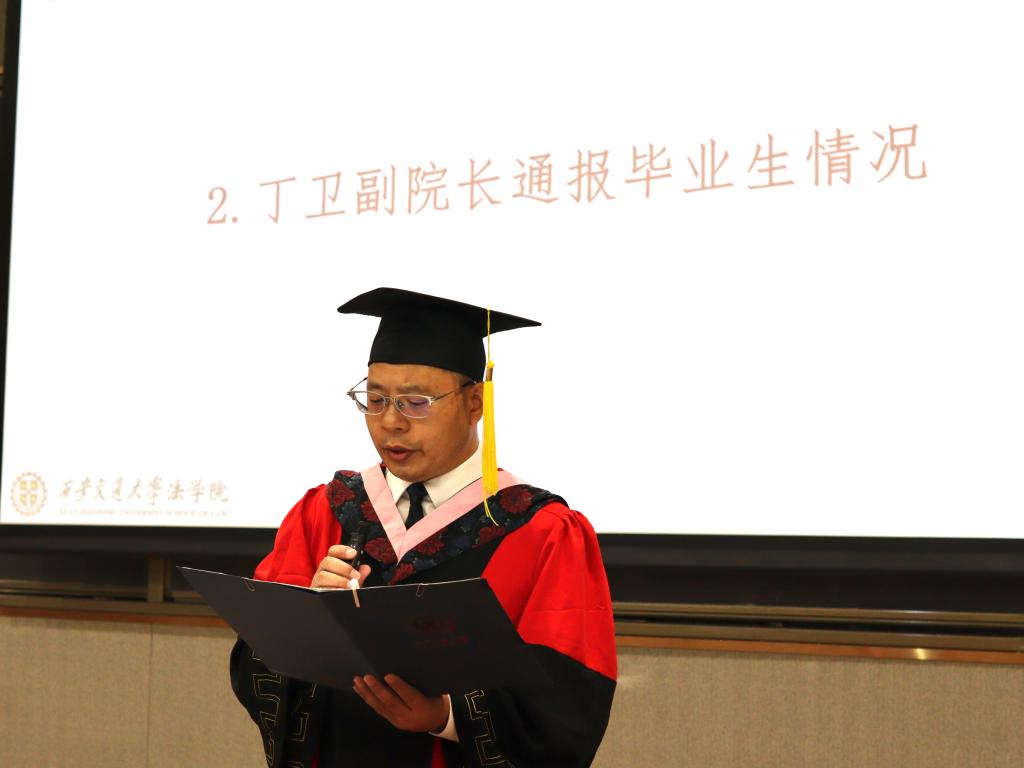 丁卫副院长首先通报了2023届毕业生情况,他表示,本届球友会官网_球友会平台(中国)毕业生在各自领域展现出了出色的才能和潜力,经过长时间的学习和实践,他们成功地进入了国内外知名律师事务所、政府机构、企业法务部门、研究机构以及高等院校等各个领域,将为社会的发展和法治建设贡献自己的力量,展现出法学专业研究生的优秀素养和综合能力。
