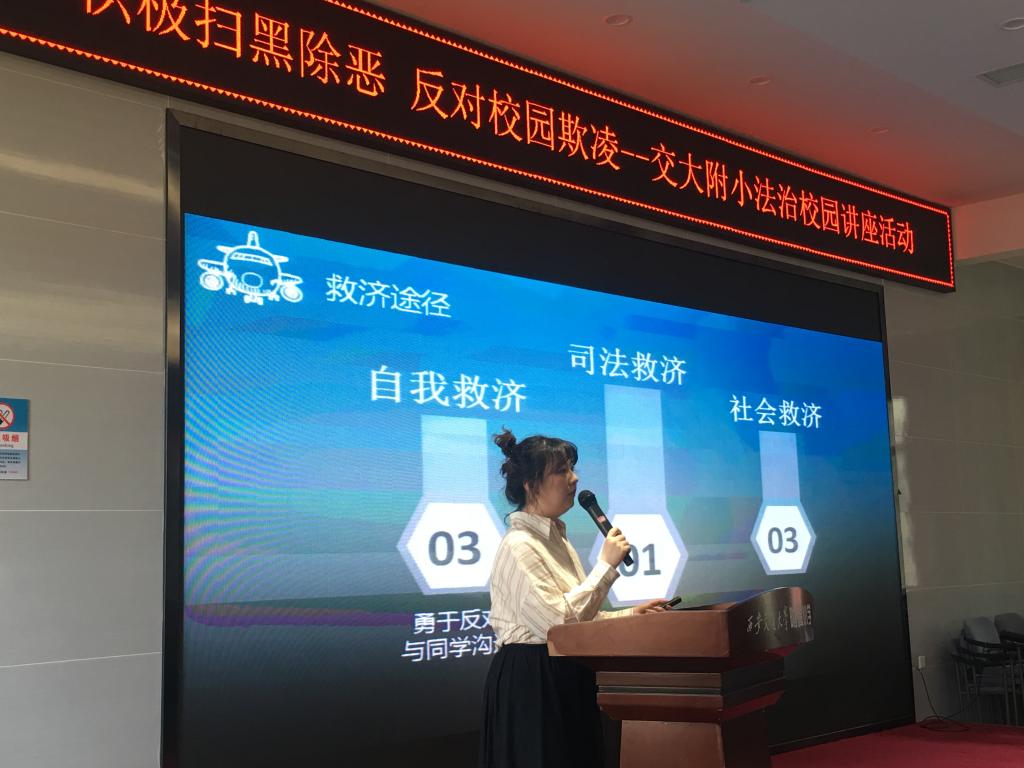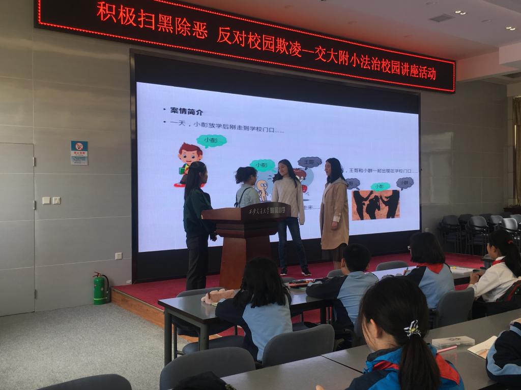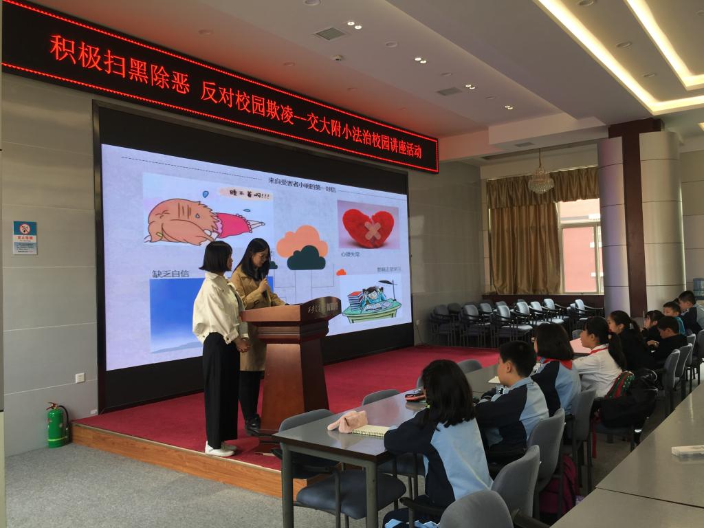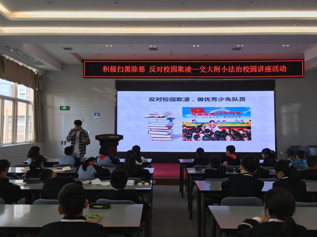2019年4月15日,球友会官网_球友会平台(中国)球友会官网_球友会平台(中国)硕7155班(三年制)党支部一行10人来到球友会官网_球友会平台(中国)附属小学,以“积极扫黑除恶,反对校园欺凌”为主题开展了校园法治宣讲活动。本次宣讲分三组进行,由浅入深,以视频、情景表演、信件沟通等方式形象生动的向小学生们传达了面对校园欺凌,该如何保护自己,如何拿起法律的武器保护自己的权益。