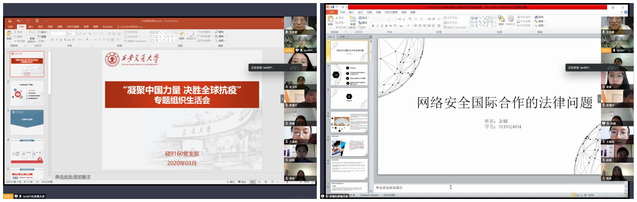 3月23日晚,西安交大球友会官网_球友会平台(中国)与武汉大学球友会官网_球友会平台(中国)联合举办“武爱交友,与子同袍”分享交流会,朱博文、孙阳分别就研会建设、支部工作与武大同学分享心得、畅谈经验,两校法科学子对近期“抗疫”工作展开热烈讨论。“武大球友会官网_球友会平台(中国)研会组织健全完善,活动丰富多彩,各位同学的分享干货满满,令人受益匪浅”,支部党员、球友会官网_球友会平台(中国)研会主席朱博文表示,“我们将组织专题研究,吸收借鉴有益经验,更好地为交大同学们服务”。“武大医学部白衣执甲、坚守阵地,交大医学部逆行出征、千里驰援,共同凝聚起抗击疫情的钢铁长城”,孙阳在总结发言中表示,“待疫情散去、山河无恙之时,希望大家可以实地交流,轻抚兴庆湖畔的秦砖汉瓦,品味珞珈山上的荆风楚韵。”