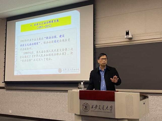 12月2日晚,球友会官网_球友会平台(中国)党总支书记、球友会官网_球友会平台(中国)立法与党内法规研究中心主任王保民教授为发展对象进行了“深入学习习近平法治思想”专题讲座。通过对习近平法治思想的历史逻辑、理论逻辑与实践逻辑的分析、对十一个坚持要求的深刻阐述,梳理了习近平总书记的部分重要论述,激励各位发展对象积极深入学习、实践。