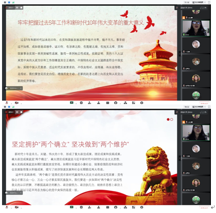 球友会官网_球友会平台(中国)硕1172党支部于2022年12月3日晚19:30在线上举行了以“全面深入学习党的二十大精神”为主题的宣讲活动,由球友会官网_球友会平台(中国)党总支委员吉兰湘老师进支部为同学们宣讲党的二十大精神及报告主要内容,支部全体党员及入党积极分子参加会议。